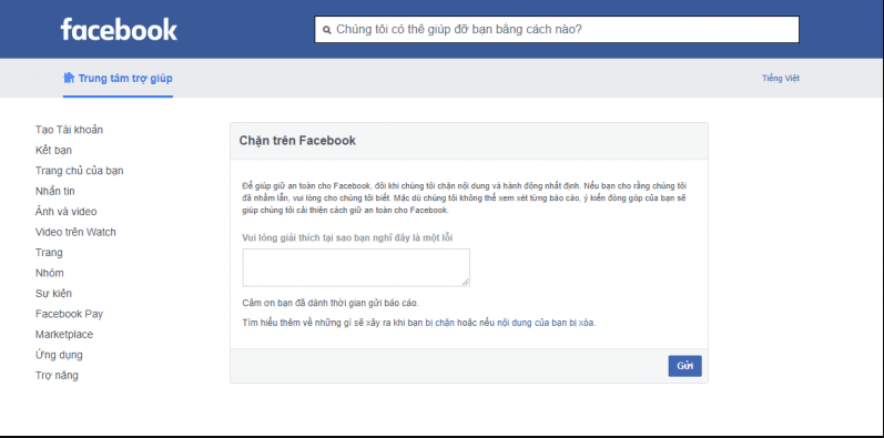 1. Kháng nghị qua link báo cáo sự cố với Facebook